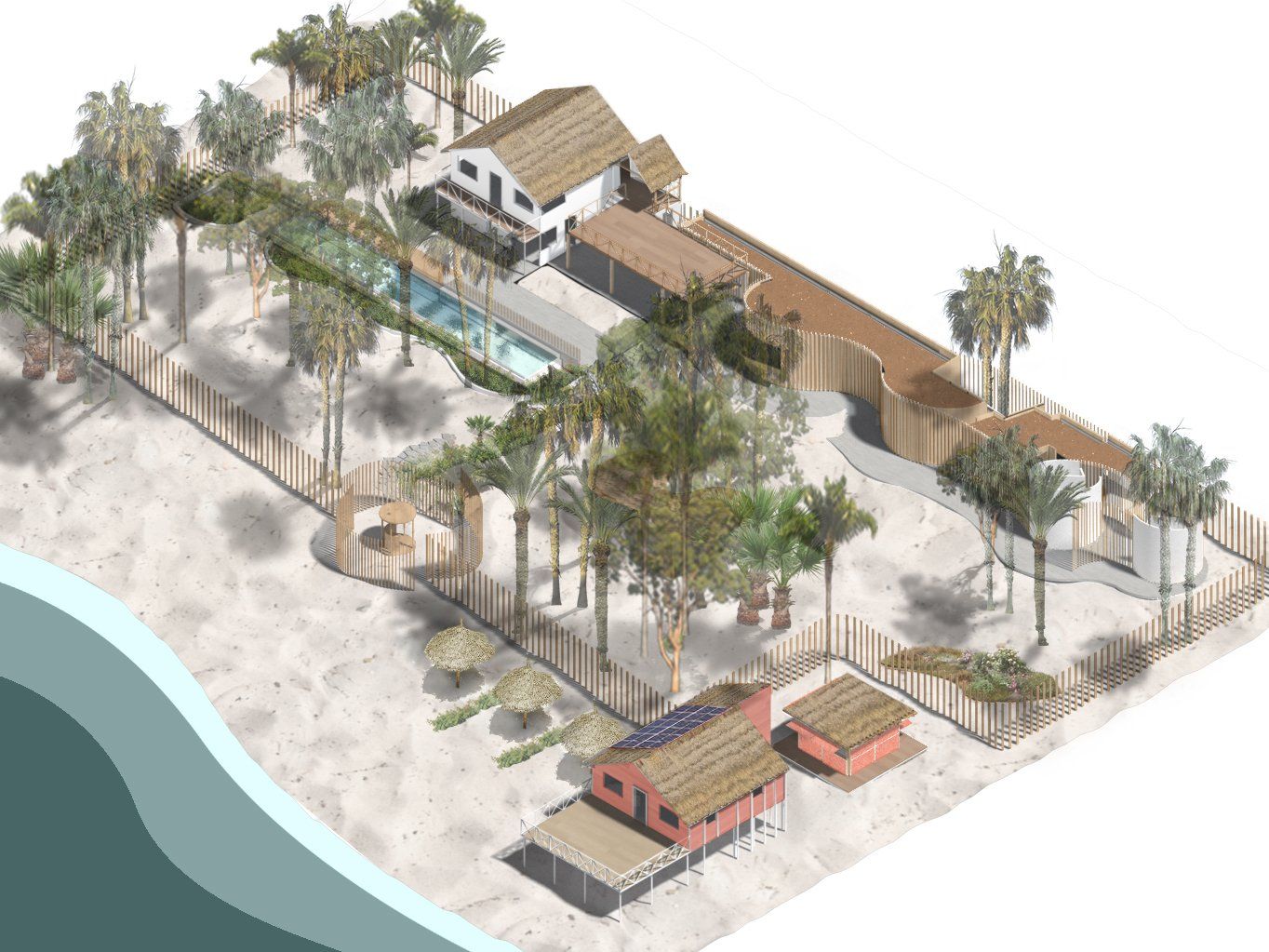 Amare is a beach club for local people and visitors, with a focus on environmental, economic and social regeneration of the island of Tierra Bomba in Colombia.